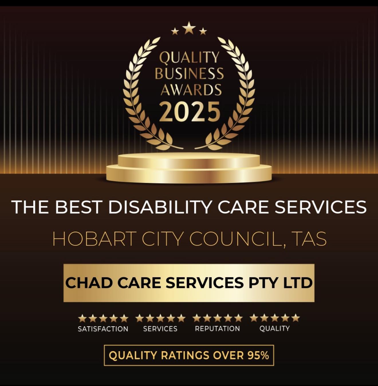We are honored to announce that CHAD Care Services has won the Best Disability Care Service 2025 award in Hobart City Council by Quality Business Awards Australia. This prestigious recognition is a testament to the compassion and dedication of our exceptional team, the trust and resilience of our participants, and the continued support of our community.