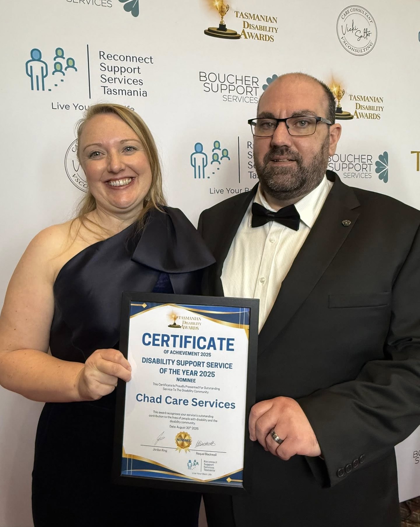 CHAD Care Services was honored to be nominated for Best Support Service of the Year at the Tasmanian Disability Awards 2025. This recognition reflects our mission to go beyond traditional support services we are committed to empowering our participants to reach their full potential while fostering a genuine sense of family, connection, and belonging.
